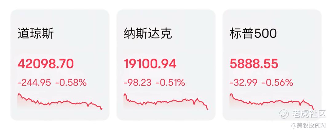 截至收盘,基准股指全线收跌。道指跌幅为0.58%;纳指跌幅为0.51%;标普500指数跌幅为0.56%。