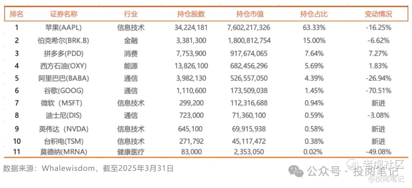 如何看懂段永平2025Q1美股持仓组合
