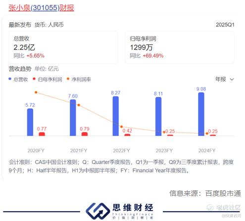 2025 年一季度,公司营收2.25亿元,同比增长5.65%,归母净利润1298.67万元,同比增长69.49%。虽然一季度净利润看似增长迅猛,但背后却隐藏着诸多问题,公司整体业绩仍处于增收不增利的尴尬局面,且自2022年以来净利润已连续三年同比下滑。