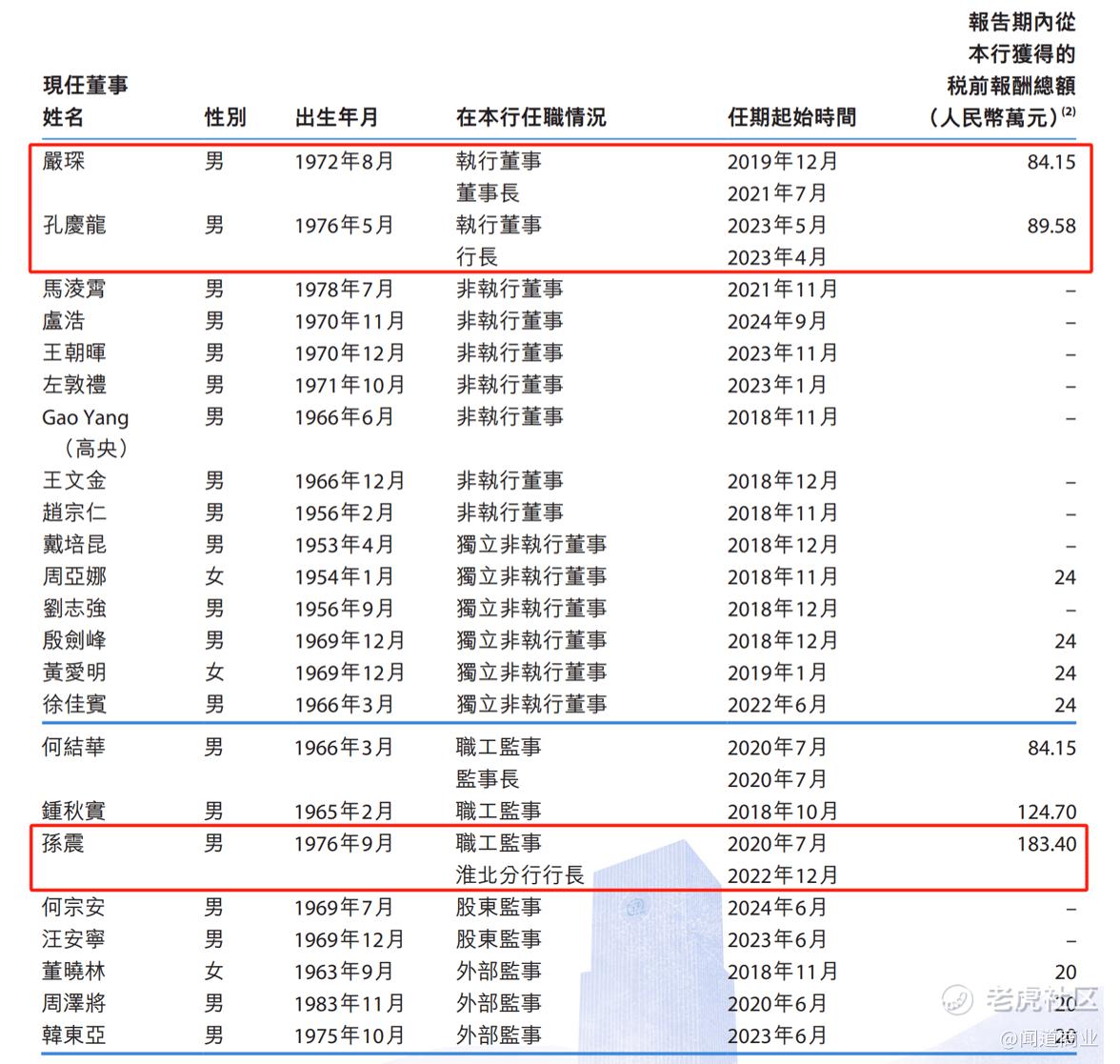 财报显示,2024年,徽商银行披露的董监高薪酬当中,孙震薪酬最高,期内获取税前报酬总额为183.4万元,较上2023年度的176.7万元上涨了6.7万元。 $徽商银行(03698)$