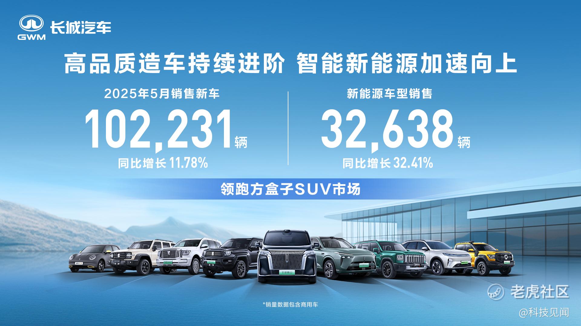 长城汽车5月销售新车102,231辆,同比增长11.78%;