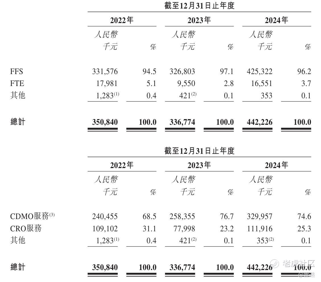 按收入来源看,泰德医药2024年来自CDMO服务的收入为3.3亿元,占比为74.6%;来自CRO服务的收入为1.12亿元,占比为25.3%。