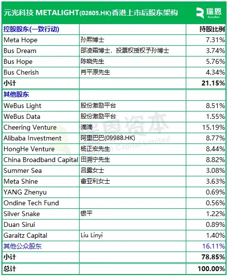 招股书显示,METALIGHT在上市后的股东架构中,孙熙博士根据投票权委托行使邵凌霜博士的投票权,以及陈晓先生、肖平原先生与孙博士一致行动并根据孙博士的指示投票,孙博士合计持股21.15%。