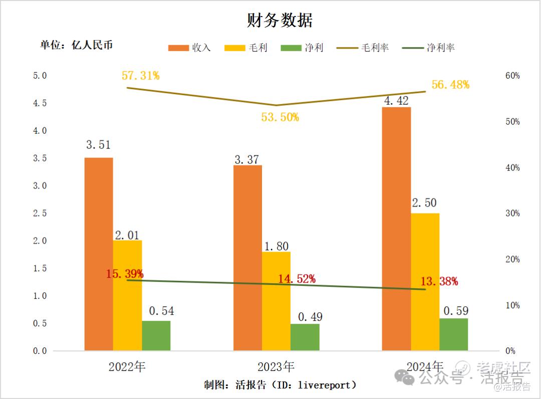 2024年度收入约为人民币4.42亿元(年复合增长率为12.27%),净利润约为0.59亿人民币(年复合增长率为4.70%)。