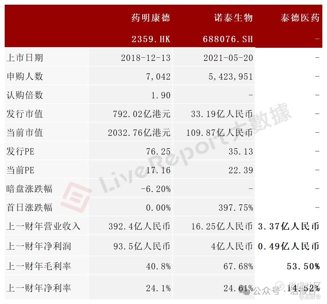 本次选取的同行业对比公司为:诺泰生物(688076)、药明康德(2359.HK)