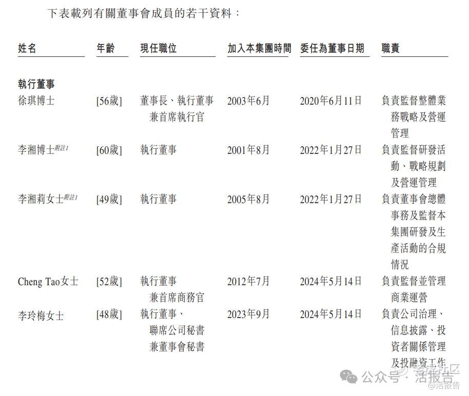 公司共计五位执行董事,一位非执行董事,徐琪博士为董事长、执行董事兼首席执行官。