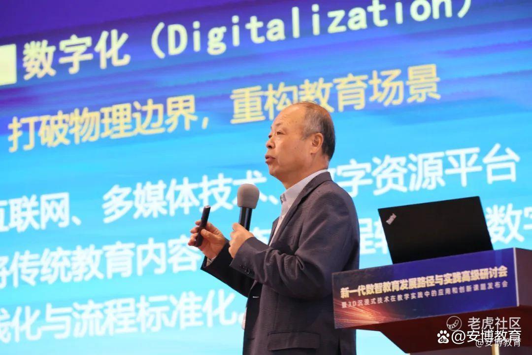 中国教育技术协会数字化环境专业委员会主任薛建国在《时代命题与教育使命——高等院校新一代数智教育实施路径探索与思考》专题报告中,从教育数字化转型的阶段性特征以及新一代数字化环境体系构成要素等角度,系统阐述了教育数字化转型实践中的面临的问题及应对策略。他指出,教育数字化转型带来教育范式的根本性转变,教学空间从实体教室拓展到虚实融合的无边界场域,评价体系从单一分数升级为多维能力图谱,知识生产从教师单向传授转向人机协同共创。基于当前教育数字化转型面临的基础设施薄弱、投入碎片化、政策执行表层化、数据应用效能低、校企合作不足等问题,建议采取体系化顶层设计、目标导向的系统规划、分步实施的推进策略,以及深化产教融合的合作模式。他强调,数字化+智能化环境创设是重中之重和破局之钥。他介绍说,安博科技深度融合AI与3D技术,打造智能化教育驱动平台,通过沉浸式3D环境重构教学空间,把AI大模型深度融入教学全流程,推动教育范式向“学生本位”转变。他强调,通过智能终端实时采集多模态教学数据,汇聚成校本专属大模型,学校最终将成为具有感知、进化和创造能力的“教育生命体”。他说,当科技深度融入环境,教育创新将自然发生。