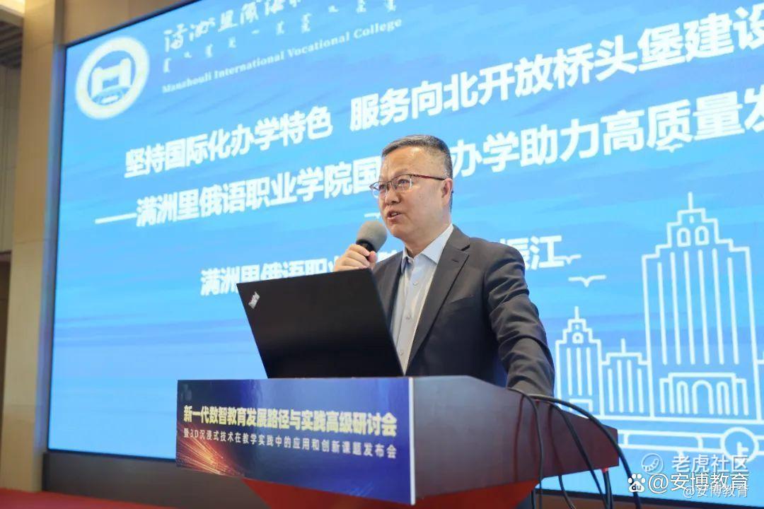 满洲里俄语职业学院党委副书记、院长田振江分享了职业院校数字化转型的生动实践。他指出,职业院校需以数智化系统为引擎,推动外语教育从“单一语言能力”向“技术赋能的复合型职业技能”转型。据介绍,作为外语为特色的高职院校,满洲里俄语职业学院将AI应用深度融合于国际化职业技能人才培养过程中,通过引入安博的AI全互动教学系统,应用俄语模拟实训室融合AI技术,打造多功能智慧教学平台,支持直播授课、远程教学与线上实践。同时,通过多语种实时字幕和翻译功能,搭建中俄高校跨地域协作桥梁,助力国际教学交流高效开展。