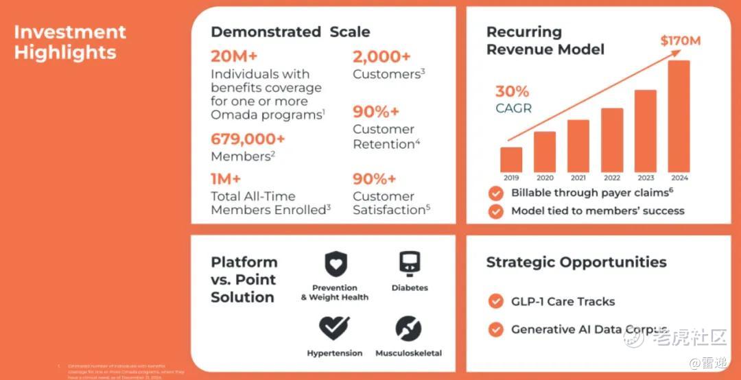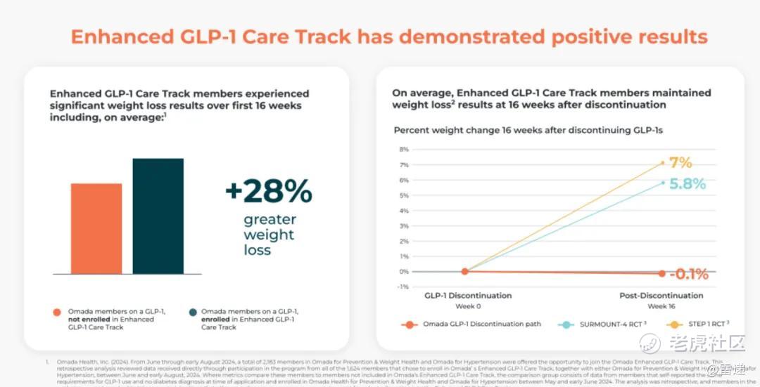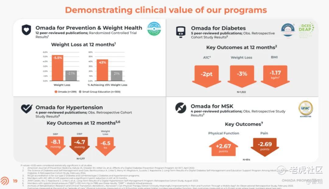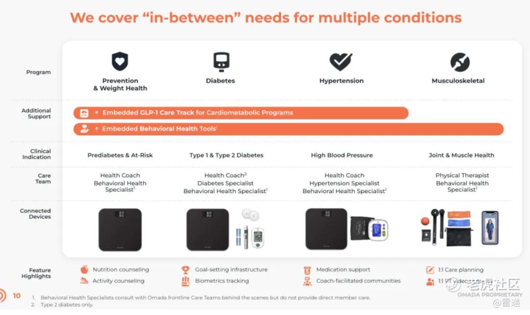 Omada Health已推出了高血压、糖尿病和MSK三种慢病管理,及推出了为GLP-1用户配套的减重服务,主力产品是减重。