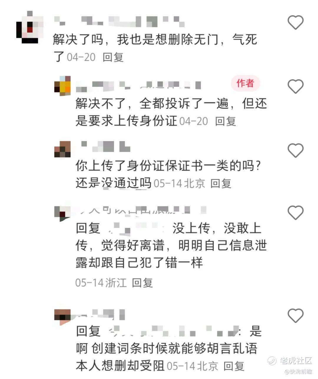 在该帖子下面,同样有网友表示自己也是“删除无门”,认为“创建词条的人能够胡言乱语,本人想删却受阻”。