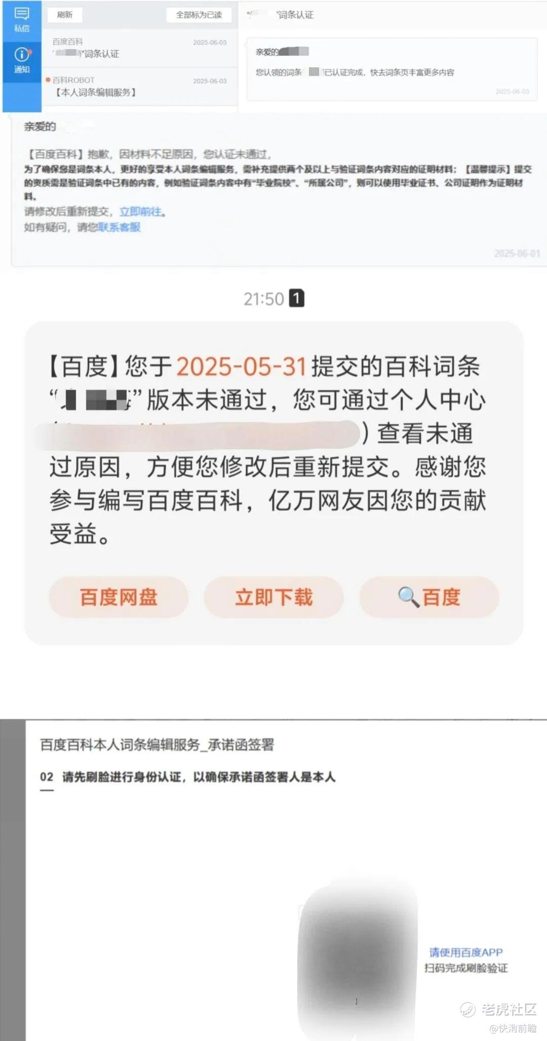 朱先生尝试修正自己的词条,选择了“本人编辑”的方法。最开始朱先生提供了自己的毕业证,随后又被要求其他证明材料,到最后甚至要求朱先生人脸识别。朱先生表示,连支付软件都未开启人脸识别,百度凭什么要求他人脸识别才可以编辑这些错误的材料。
