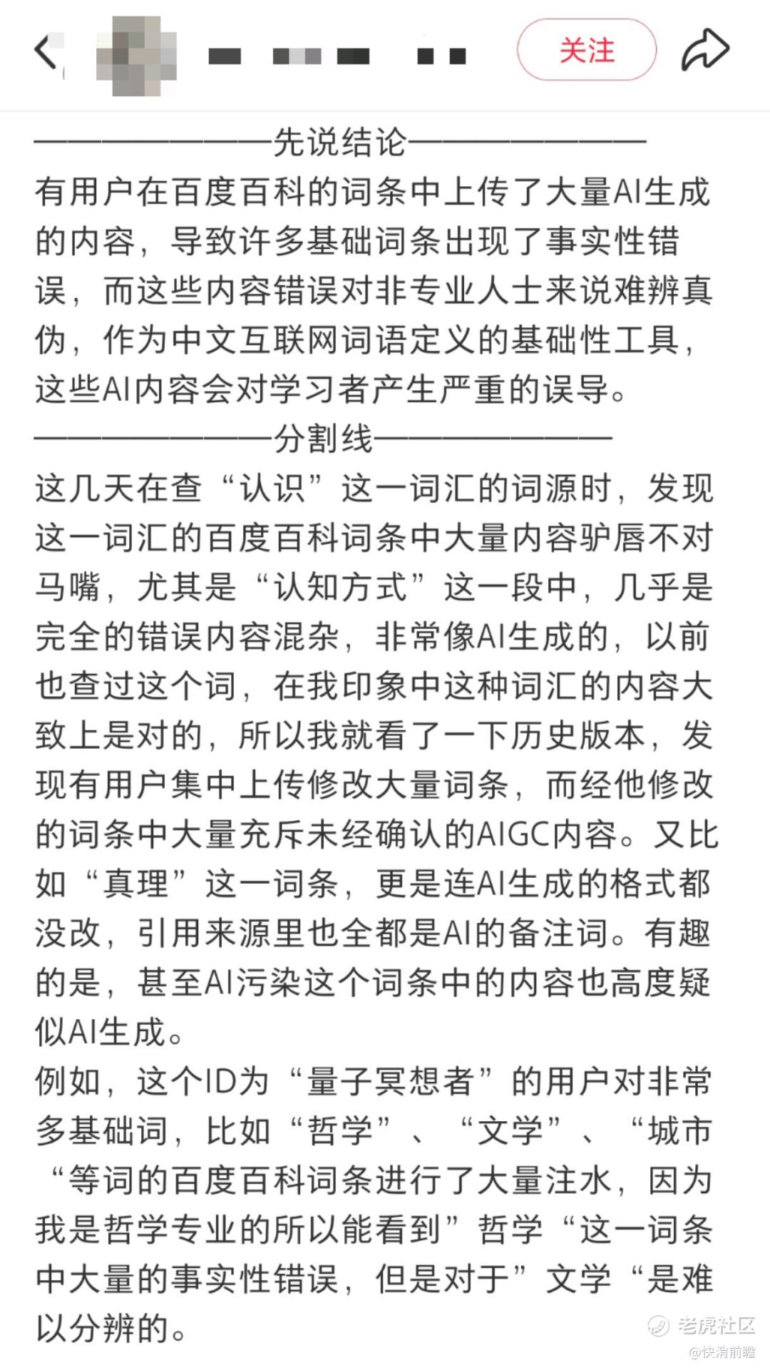 除此之外,随着AI时代的来临,不少用户反映百度百科词条中出现了大量AI生成的内容,导致许多基础词条出现了事实性错误。