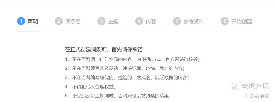 快消前瞻通过体验百度百科进行词条创建,发现可以创建的词条主题包括人物、产品品牌、医疗、企业类等内容,创建词条也明确要求“不许添加广告性质”“不编写虚假、捏造、恶搞、缺乏依据的内容”,明确规定了不能侵犯他人合理权益。