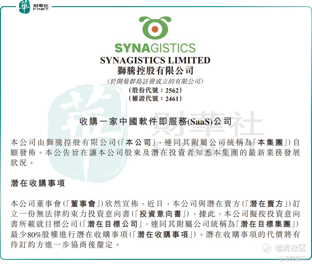 一纸收购公告!狮腾控股股价一度涨逾8%