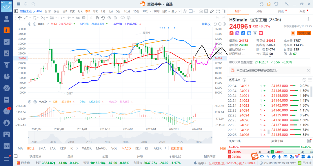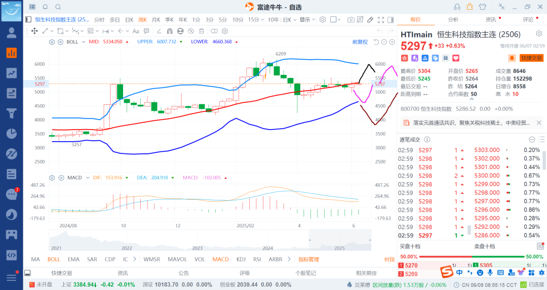25-5-29 中概恒科回调到日boll带下轨补点多回来