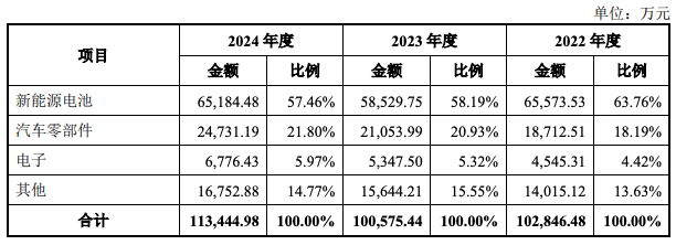 具体来看,美德乐2023年收入下滑主要是应用于新能源电池领域的收入减少,从6.56亿元降至5.85亿元,2024年该业务板块收入回升,但仍未超过2022年。