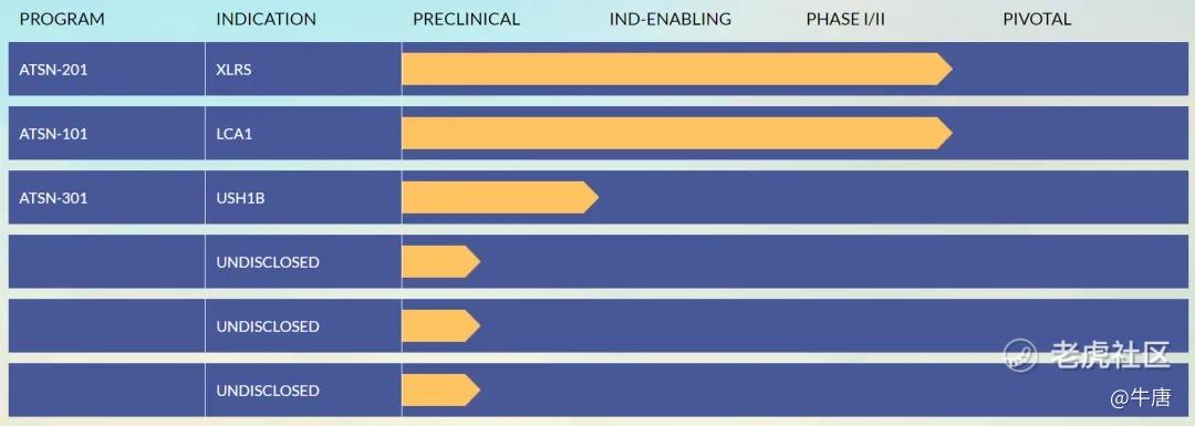 ATSN-201是用于治疗X连锁视网膜劈裂症(XLRS)的基因疗法,通过玻璃体内注射实现基因载体在视网膜的高效扩散,避免传统视网膜下注射的手术风险,计划下半年发布临床I/II期研究数据,药物已被授予快速通道、罕见儿科疾病和孤儿药指定。