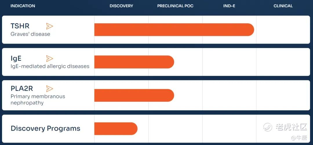 首先,公司进入临床阶段的候选药物瞄准Graves’ 病(甲状腺功能亢进相关自身免疫疾病),并有可能进一步拓展到相关的甲状腺眼病(Thyroid Eye Disease)。接下来,公司还计划快速推进针对食物过敏和原发性膜性肾病(PMN)的项目。