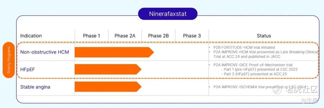 目前,Ninerafaxstat精准锁定三类存在巨大未满足需求的心血管疾病领域:非梗阻性肥厚型心肌病 (nHCM) 、稳定型心绞痛以及射血分数保留型早期心力衰竭 (pre-hfpef)。