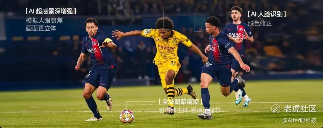 专属的AI绿茵场增强功能,让草坪鲜艳得仿佛近在眼前;AI场景音效和AI清晰人声功能,可以在降低背景噪音的同时,提高解说清晰度;为球迷量身打造的“体育智能体”,能够提供丰富的比赛信息和预约功能等,帮助球迷从赛前到赛中全流程掌握赛场情况;独家定制的6.2.2 声道影院级帝瓦雷声学系统,营造出高度拟真的沉浸式氛围,在客厅也能像在大赛现场一样兴奋。