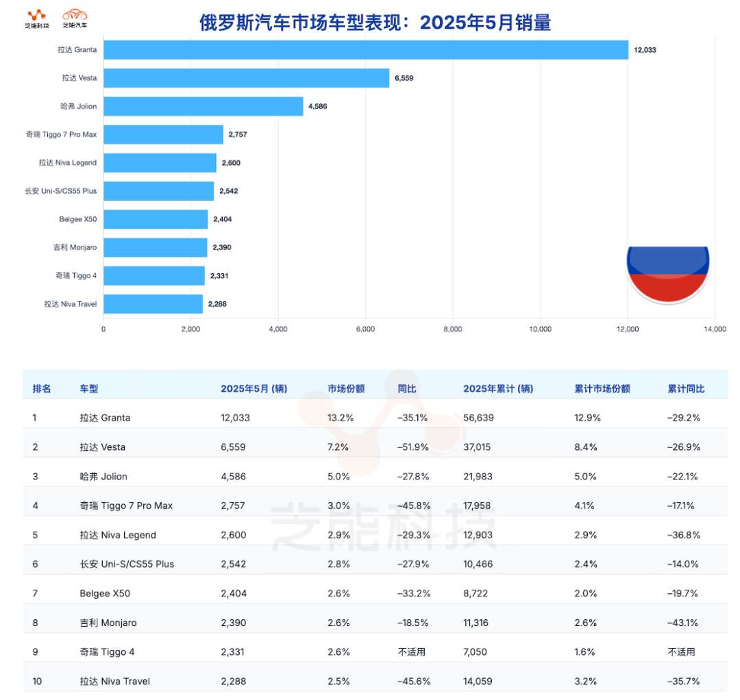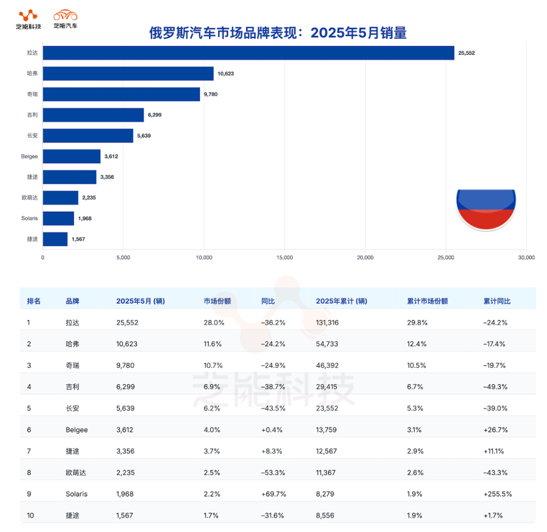 欧洲车市 | 俄罗斯2025年5月:车市低迷,中国品牌逆势上扬