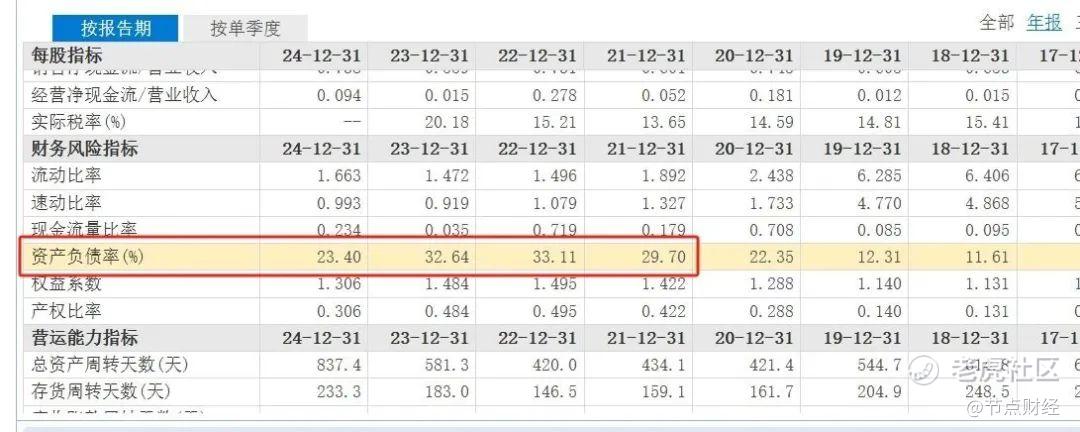 财报数据显示,经过2024年的调整,截至2024年末,其总负债较年初减少24.24亿元,资产负债率下降近10个百分点至23.4%。负债率如此大幅优化,足以稳住公司的基本盘。