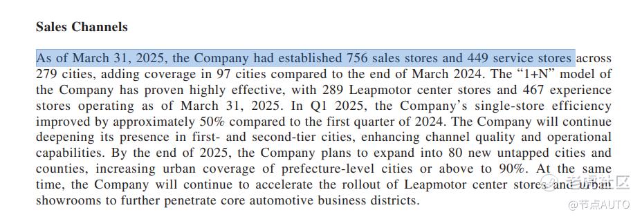 为了提高销售费用效益,零跑采用的是“1+N”销售模式,也就是少数直营加上多数代理,来帮助自己在快速扩张的同时减少资产投入,从效果来看,截至2025年一季度零跑有756销售门店和449家服务门店,其营销费用占营收比例只有6%。相较之下,同样是直营+经销商的小鹏,一季度门店总数是690家,营销费用占营收的12%;采用直营为主的理想,营销费用占比则为10%。总体来说零跑的营销费用控制是得当的。