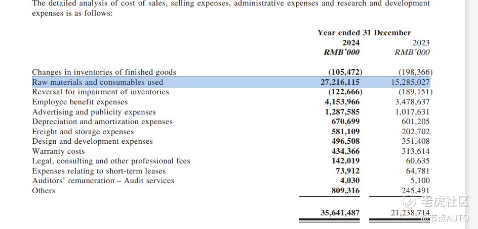 在零跑2024年的年报里,详细披露了用于原材料的成本,可以看到零跑的原材料成本有272亿元,占总生产成本的92.4%,相当于每辆车的造车原材料成本9.3万元,而零跑汽车的均价在11万元左右。