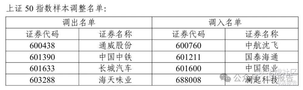 据中证指数公司于5月30日公布的上证50、上证180、上证380、科创50等指数调整结果显示,上证50指数调出海天味业、长城汽车、中国中铁、通威股份等4只成分股,相关调整已经于6月16日生效。