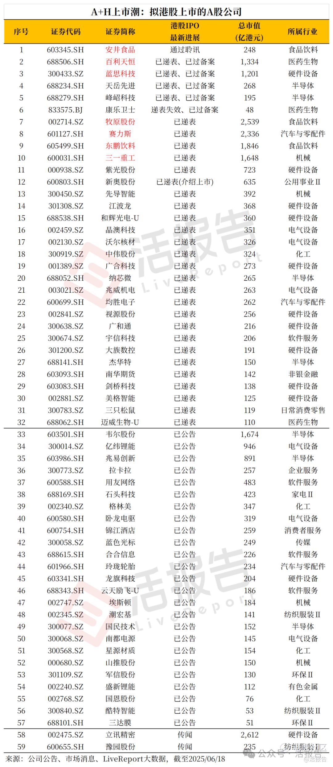 紧接着海天味业,三花智控将于6月23日在港交所挂牌。此外,正在筹备港股IPO的A股公司还有50多家,不乏多个行业龙头股。