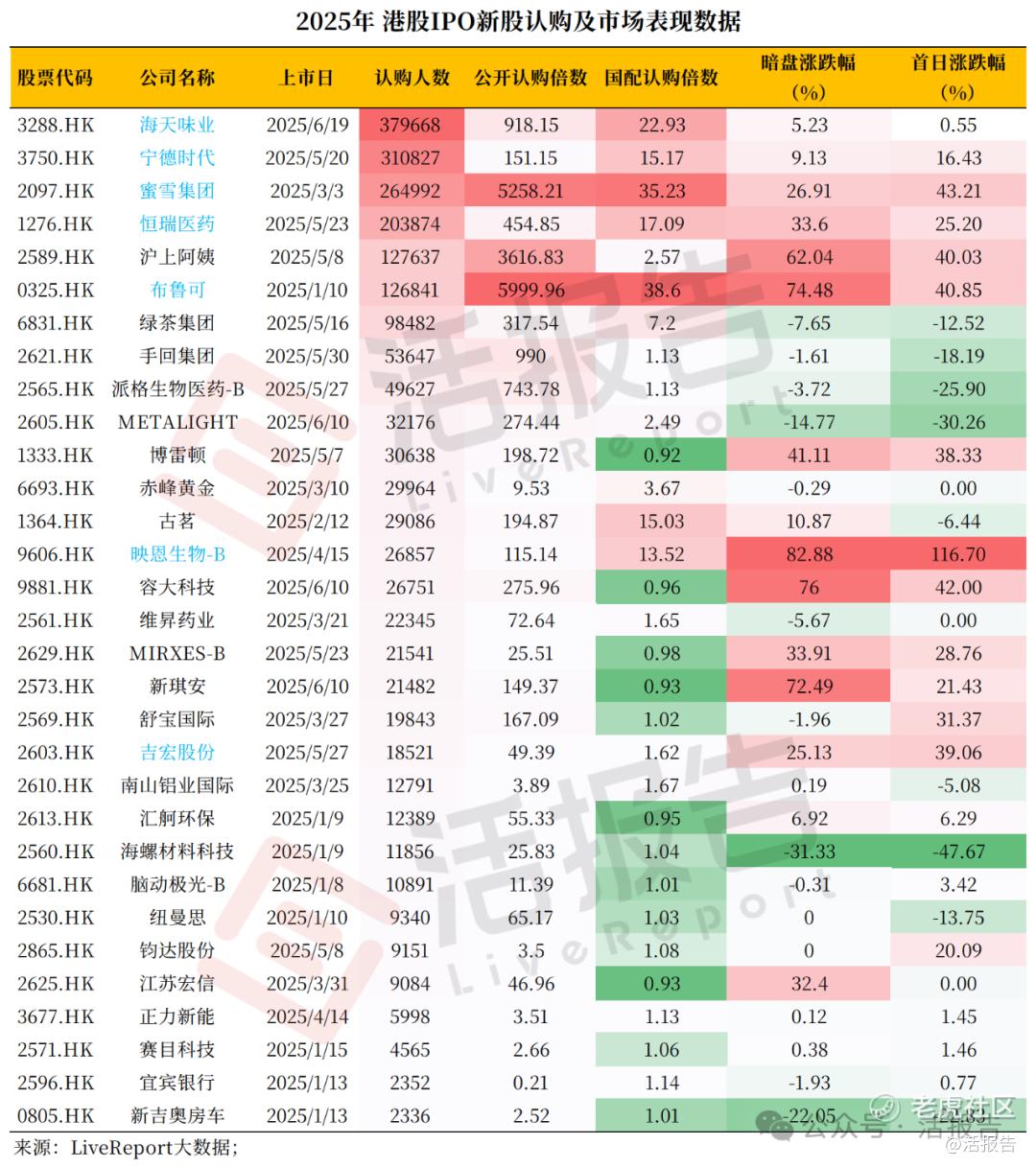据LiveReport大数据统计,海天味业在招股阶段合计获得高达7323.7亿港元的资金认购,这也意味着在38万人掏出7300多亿港元抢筹“酱茅”的情况下,都没阻止其盘中一度破发。