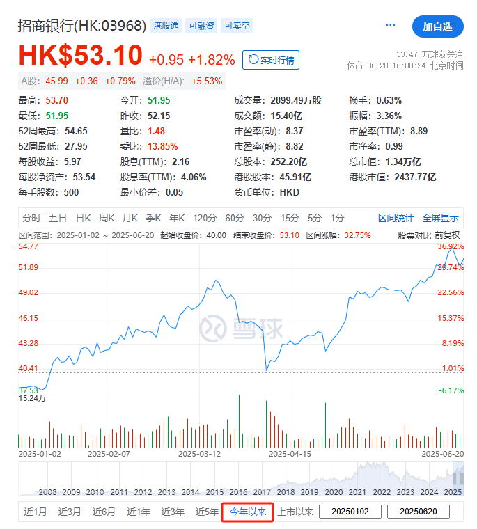 在此之前,平安人寿曾在1月10日、3月13日分别举牌招行H股,所持该行H股数量占其H股总数分别突破5%、10%。而此番举牌,也是平安人寿半年内第三次举牌招行H股。