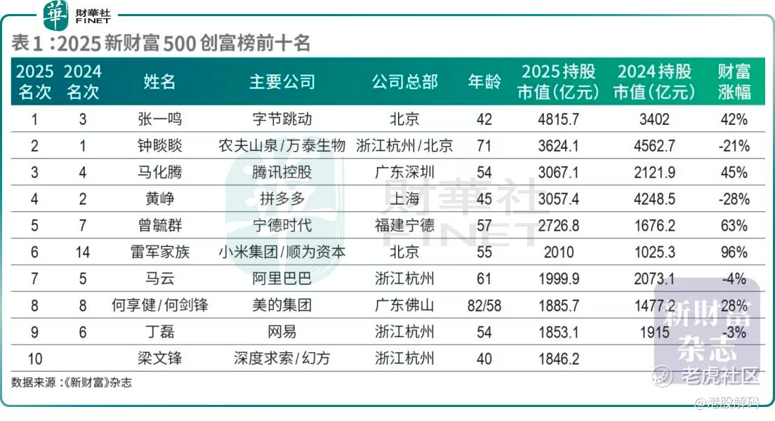 2025新财富创富榜:AI疯狂造富,张一鸣登顶,梁文锋进前十