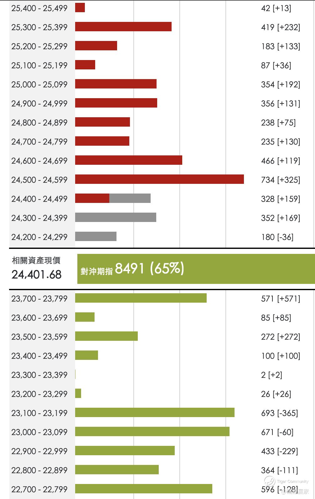 如果只(66765)过埋夜嘅话,咁今朝见 $HSI(HSI)$ 再裂口升多150几点应该已经开糊。而依家9点43分,见指数暂时最高做过24390点,但由于24300至24399点呢层熊证里面,最大收回价系24388,所以呢一层嘅熊证其实已经被全数收回,换言之指数今朝开市先用咗两层熊证做早餐,有相当于532张期指街货。