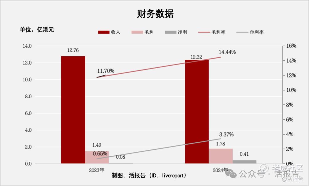 收入分别约为港元12.8亿元、12.3亿元,2024年同比增长率为-3.45%;