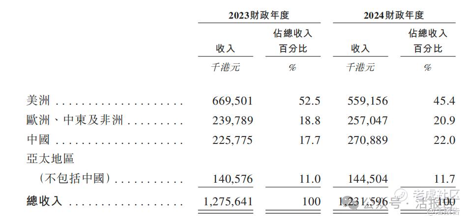 按地区分,公司收入主要来自美洲、欧洲、中东及非洲、中国及亚太地区(不包括中国)。