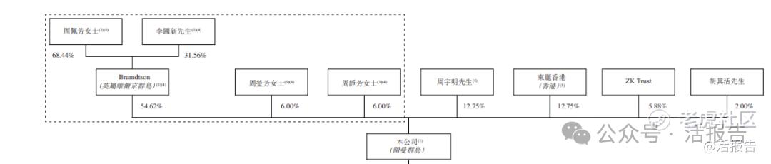 周宇明持股12.75%,东丽工业(3402.T)通过东丽香港持股12.75%、ZK Trust 持股5.88%、胡其活持股2%。