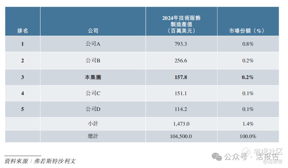 于2024年,按产值计算,公司在亚洲技术服饰制造市场中国制造商中的市场份额为0.2%,为亚洲技术服饰制造行业中第三大技术服饰制造商。