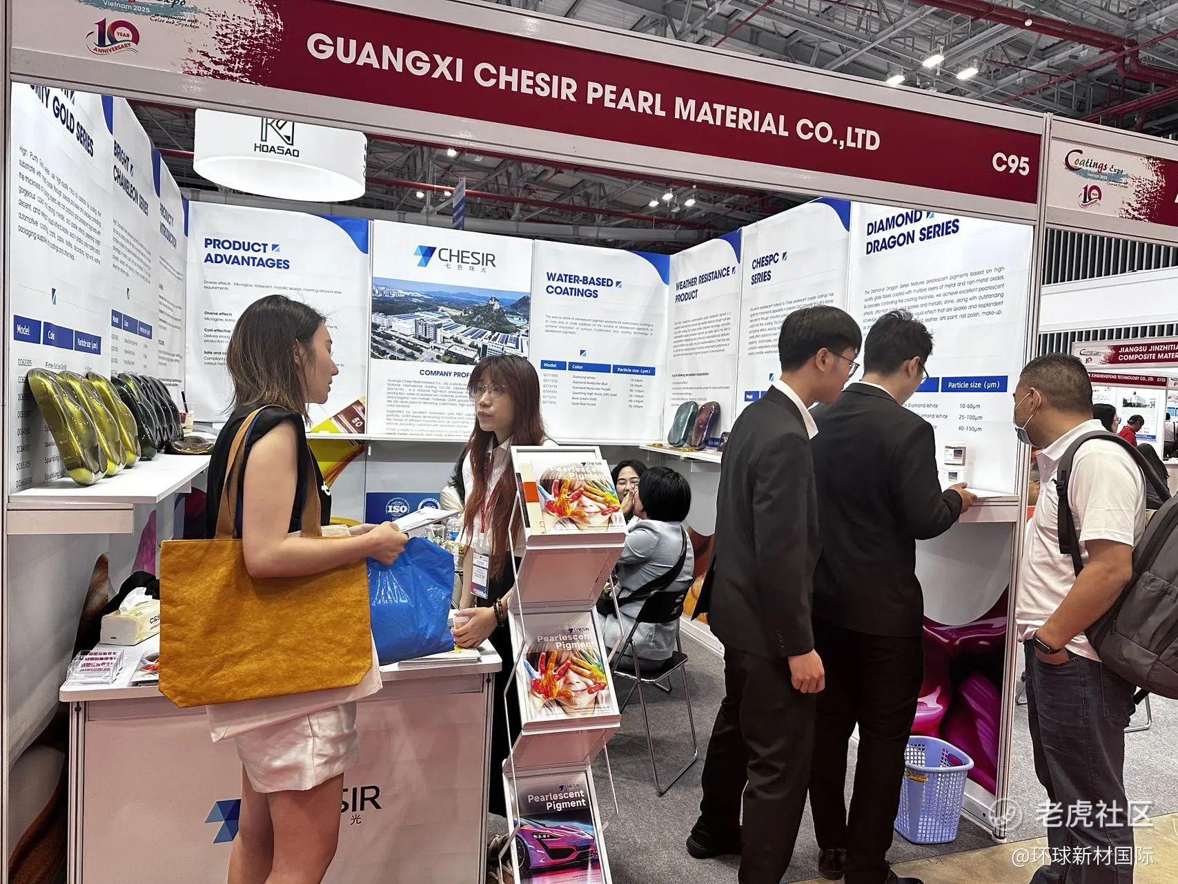6月25日,2025年越南国际涂料展(Coatings Expo Vietnam 2025)在胡志明市西贡会展中心盛大开幕!环球新材国际旗下广西七色珠光材料股份有限公司携多款高性能、高耐候、高稳定性的环保珠光材料明星产品亮相展会,首日即吸引全球涂料产业链专业人士驻足交流。
