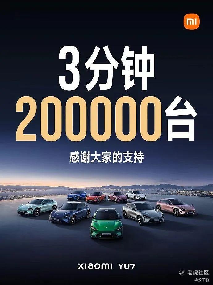 YU7的参数配置和价格发布后,震撼的声音隔着屏幕都能听得真切,粉丝们只恨下单的手速太慢,排队又那么遥遥无期。官方数据显示,上市3分钟大定突破20万台,1小时大定突破28.9万台,卖出了Model Y去年在国内60.17%的销量(48.03万辆),妥妥的碾压。