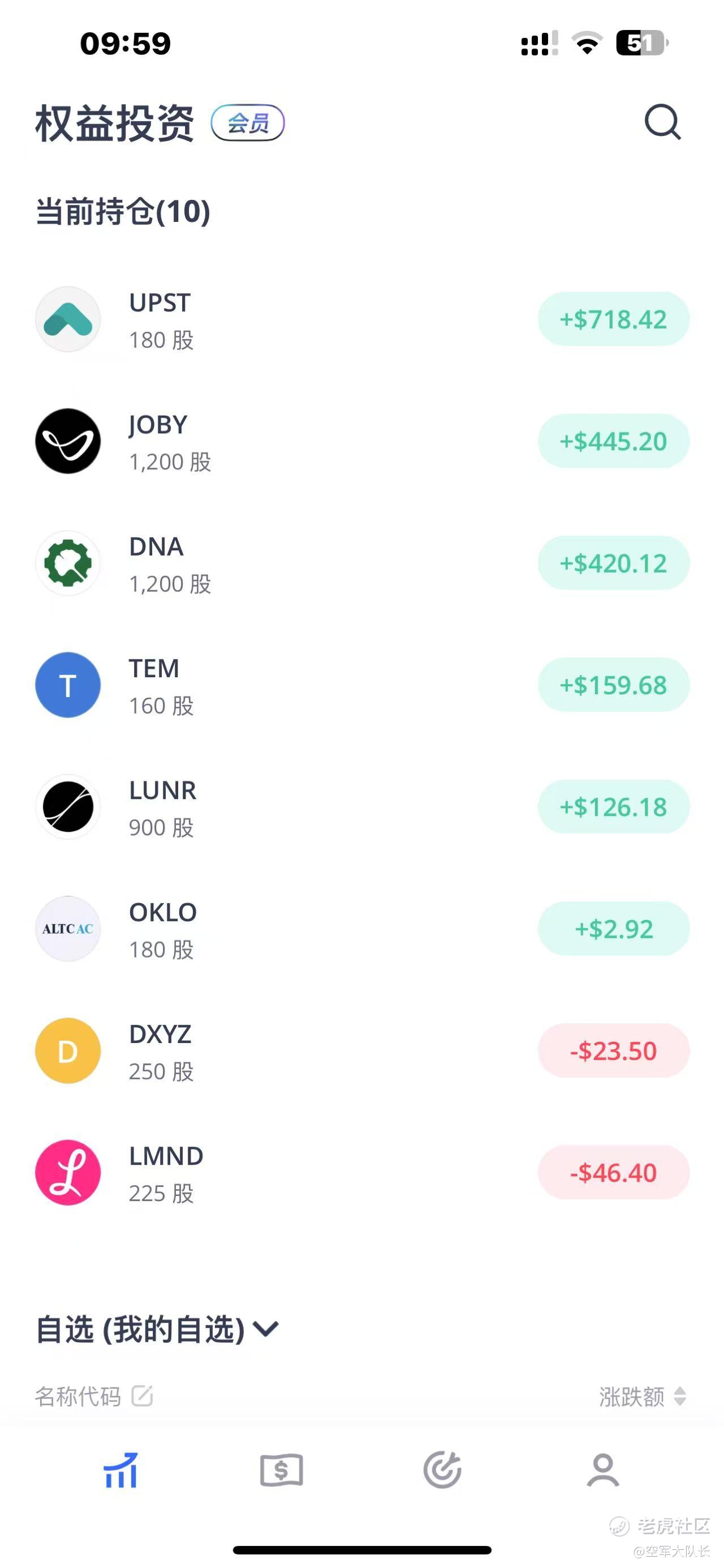 上次我说了要做短线,这个星期的短线做得非常顺利,HIMS是45.5开始在群里叫人买,然后打算到49出来,结果没有涨,还跌到了42,然后42补仓,46出来,结果连续两天都到了46,也就是说45.5买的地方应该是没有赚什么钱,但是42买的就赚钱了,一般短线赚10个点出来,一两天就能到,一般赚20个点的话,那就要十天半个月的,但是赚30个点就是时间问题,而是很多股票根本不会涨30个点就跌了,HIMS其实是不符合我抄底标准的,因为在6月3号创了新高63.37,后面就跌到了52.从52反弹到了64,这个反弹超过了20%,但是后面没有创新高,理论上来说,这种从底部起来反弹了20%,后面又没有创新高的股票是不能做的,但是HIMS一下子跌了40%,所以我就要抢一把反弹,主要是觉得HIMS还是很优质一家公司,不然是后面不创新高的股票是不抄底的,但是因为HIMS不符合我的抄底标准,所以反弹10%就出来算了,反正也赚钱了。
