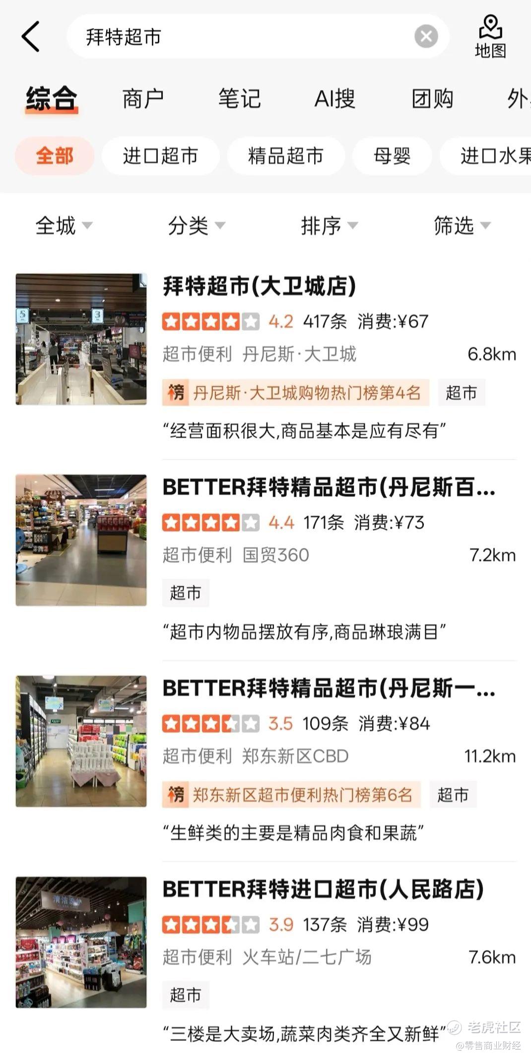 现阶段,拜特超市已开启了河南全省的扩张,比如今年1月“拜特超市”安阳市彰德府店正式开业;但在郑州市内,根据第三方平台查询的数据显示,拜特超市仅有四家门店,分别为大卫城店、人民路店、丹尼斯一天地店、花园路店。