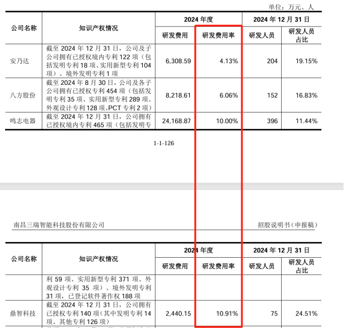 三瑞智能在招股书中将安乃达、八方股份、鸣志电器、鼎智科技列为可比公司,其研发费用分别为4.13%、6.06%、10.00%、10.91%,与大疆超过15%的研发费用率相比,三瑞智能更是差距悬殊。