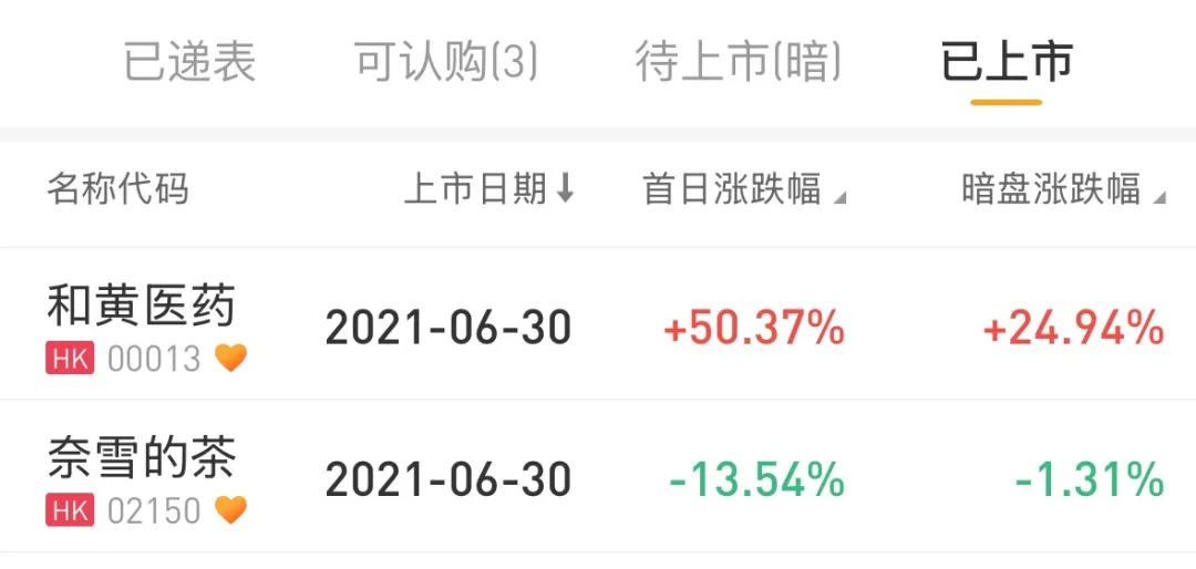 预期一致就反转,谁知道上市首日大热门奈雪股价崩了,打新人亏的直骂娘,反观和黄医药每股定价40.1港元,盘中股价最高涨到85.8港元,涨超110%,最后收涨50%。