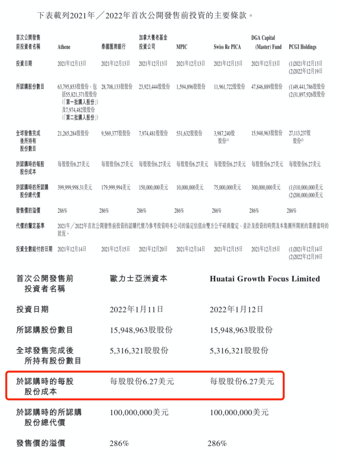 富卫集团成立以来进行了多次融资,2022年1月引入华泰金控和欧力士亚洲,筹资2亿美元,每股成本6.27美元(约49.2港元),而本次发行价是38港元,也就是说投资了三年还亏30%。