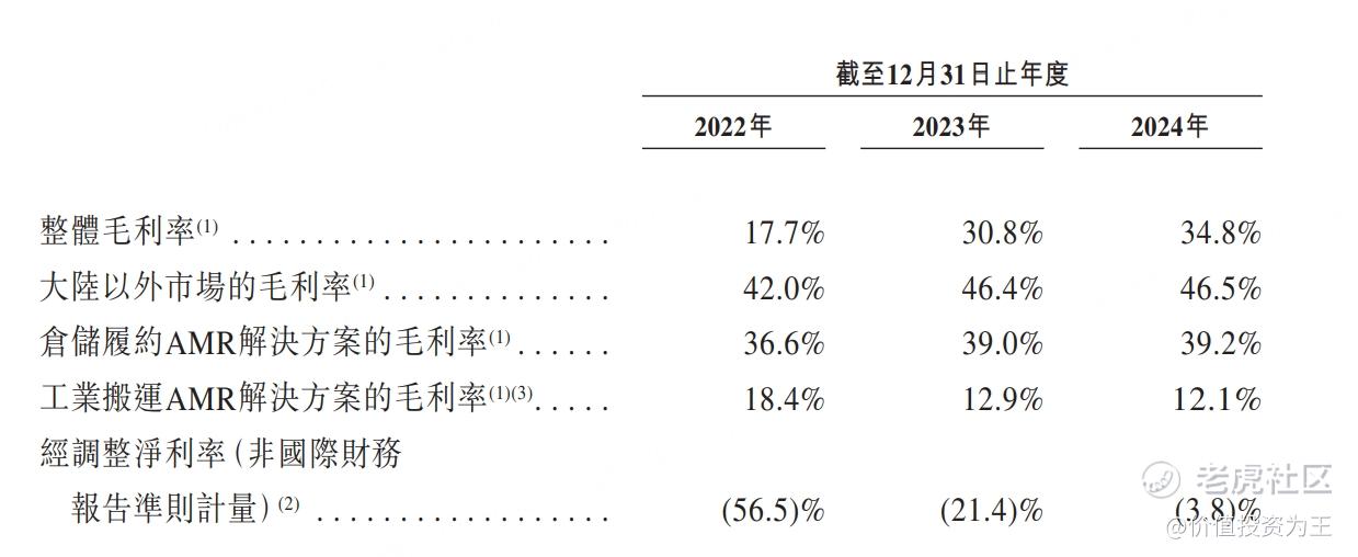虽然增速算不上惊艳,但极智嘉的毛利率达到34.8%,海外市场收入占比高达72%,而且海外市场的毛利率达到46.5%,在TO B类制造业中属于顶级的存在!而且,极智嘉调整后的净利率已从2022年的-56.5%收窄至-3.8%,有望迎来盈亏转折点: