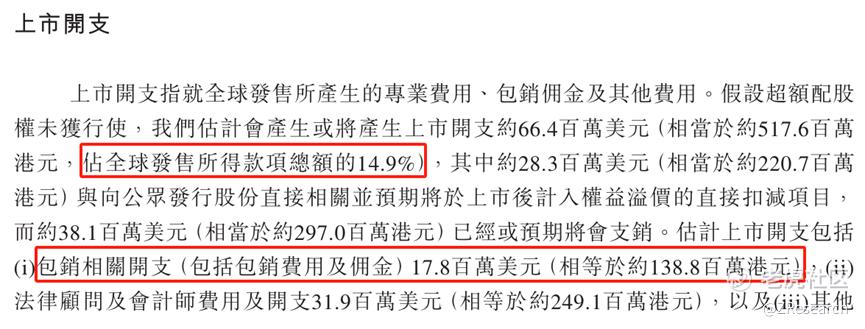 此次富卫集团港股上市的开支总额约为5.176亿港元,按发售价38.0港元计算,募资额约34.71亿港元,开支占比约为14.9%。其中包销相关开支及费用1.388亿港元,占全球发售所得额的4.0%。