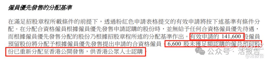 例如,最近上市的IFBH,本次提供了14.82万股给员工优先认购,合计认购14.16万股,余6,600股未获认购,最终回拨至公开。