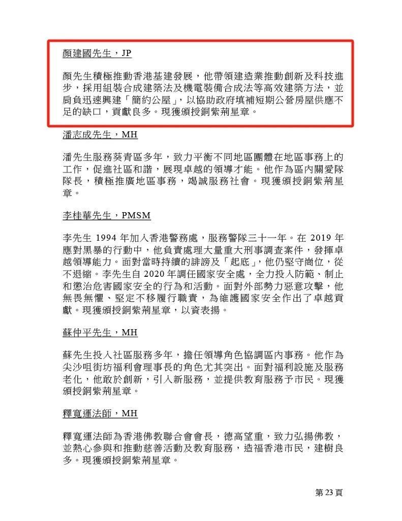 今年恰逢香港回归祖国28周年,也是中国海外集团在香港创立的第46年。2022年以来,颜建国先生先后获香港特区政府授予太平绅士和铜紫荆星章,实现了中资企业的历史突破,这不仅是个人的荣誉,也是公司的荣誉,更是特区政府和香港社会,对中海扎根社会深、建设项目多、服务市民广、贡献香港大,以及几代中海人接续奋斗、努力拼搏的高度认可。