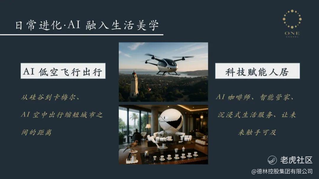 德林控股(美国)专注于服务高净值客户,旗下ONE Carmel项目位于美国卡梅尔谷与太平洋的山海之间,距离硅谷1.5小时车程。目前,ONE Carmel一期项目基础设施即将竣工,这里未来将配备全球最先进的AI智能社区系统,包括安防机器人巡逻筑起社区安全防线,并有AI咖啡师、智能管家提供沉浸式生活服务。在日常生活中实现人类、AI与自然的和谐共生,重新定义城市生活与智慧的社区。